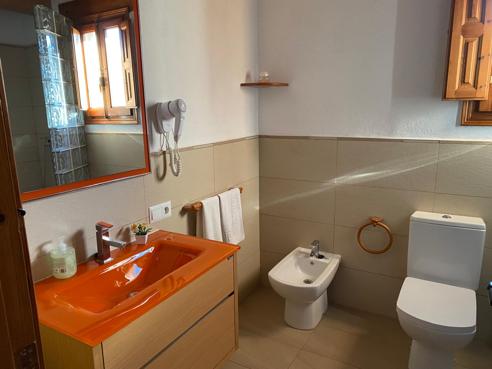 Cuenta con baño privado con ducha y secador de pelo, calefacción y televisión. El entorno natural que rodea la masía y la tranquilidad del paisaje acompañan toda la estancia.