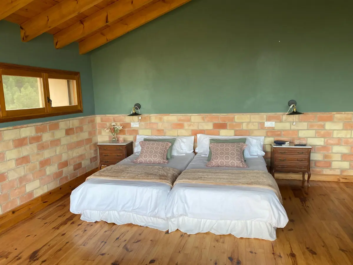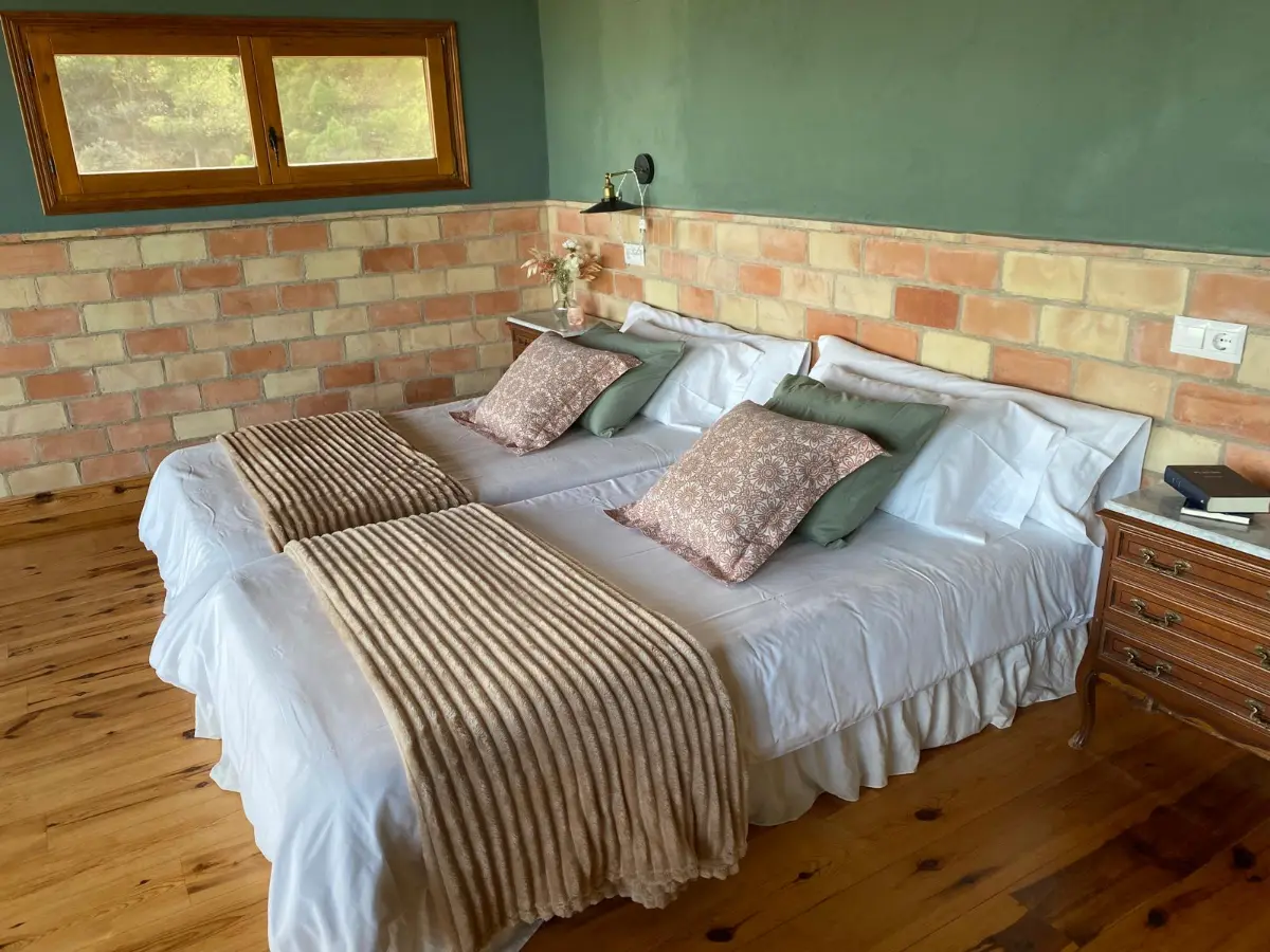 La habitación combina elegancia sobria y estilo rural, con una cuidada ambientación inspirada en la espiritualidad y la historia del lugar. Dispone de dos camas